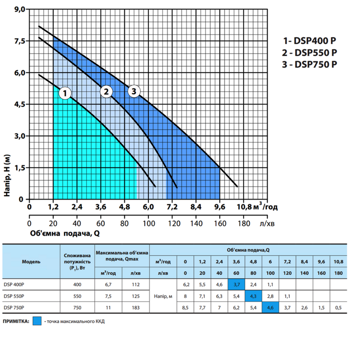 DSP 550P 550 7,5 125 8 7,1 6,3 5,4 4,3 2,8 1,1