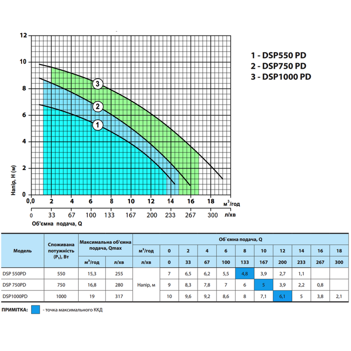 DSP 550PD 550 15,3 255 Напор,