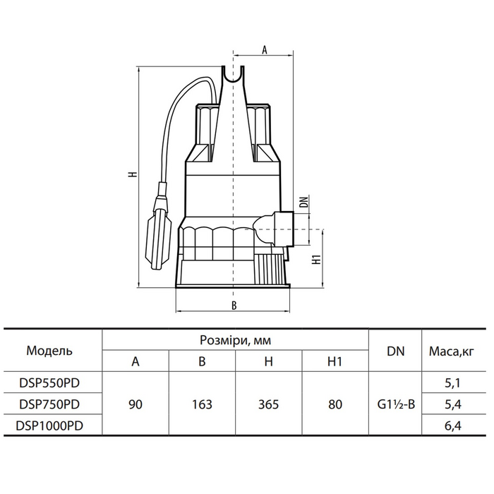 • укомплектован поплавковым выключателем