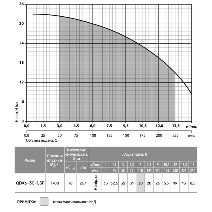 QDX 6-30-1,5F 1780 16 267 Напор,