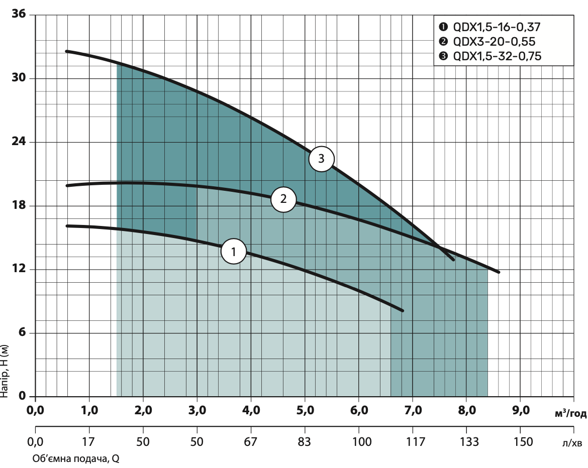 QDX 1,5-16-0,37F 550 6,6 110 Напор,