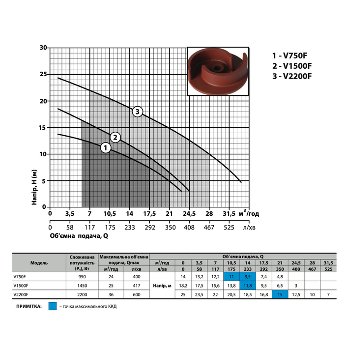 • Рідина, що перекачується: чиста або забруднена вода або інша рідина, схожа з водою за щільністю та хімічною активністю.