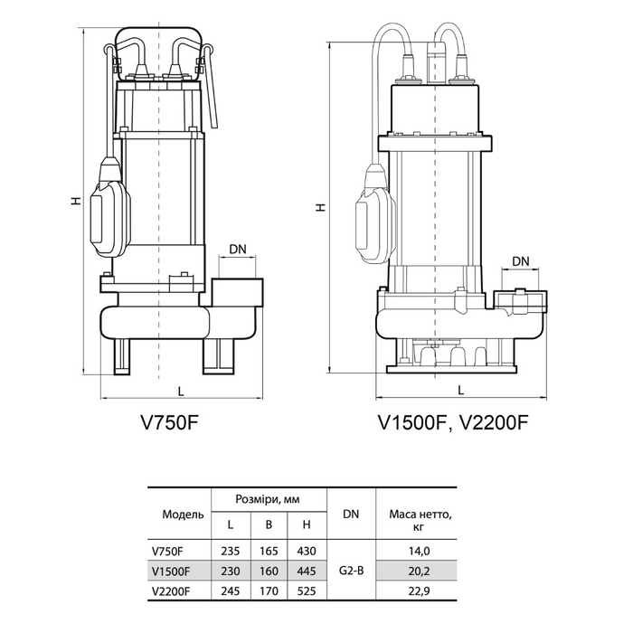 Електронасоси дренажно-фекальні серії V призначені для відведення води з затоплюваних приміщень; перекачування рідин з малим вмістом біологічних відходів, стічних вод, відстояних каналізаційних вод, що містять колоїдні, маслянисті речовини, дощової та фільтраційної води; переробки побутових стоків; подачі води з відкритих водойм для систем поливу в садівництві, сільському та лісовому.