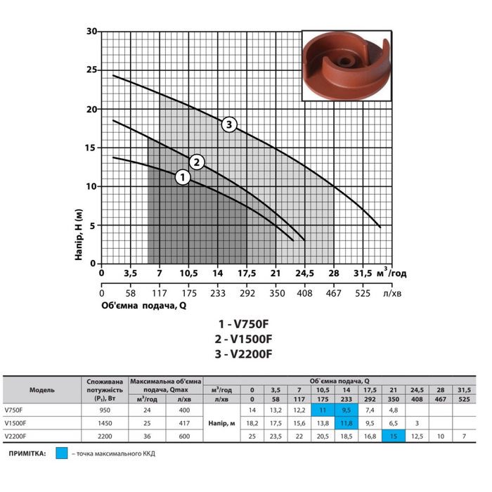 • Рідина, що перекачується: чиста або забруднена вода або інша рідина, схожа з водою за щільністю та хімічною активністю.